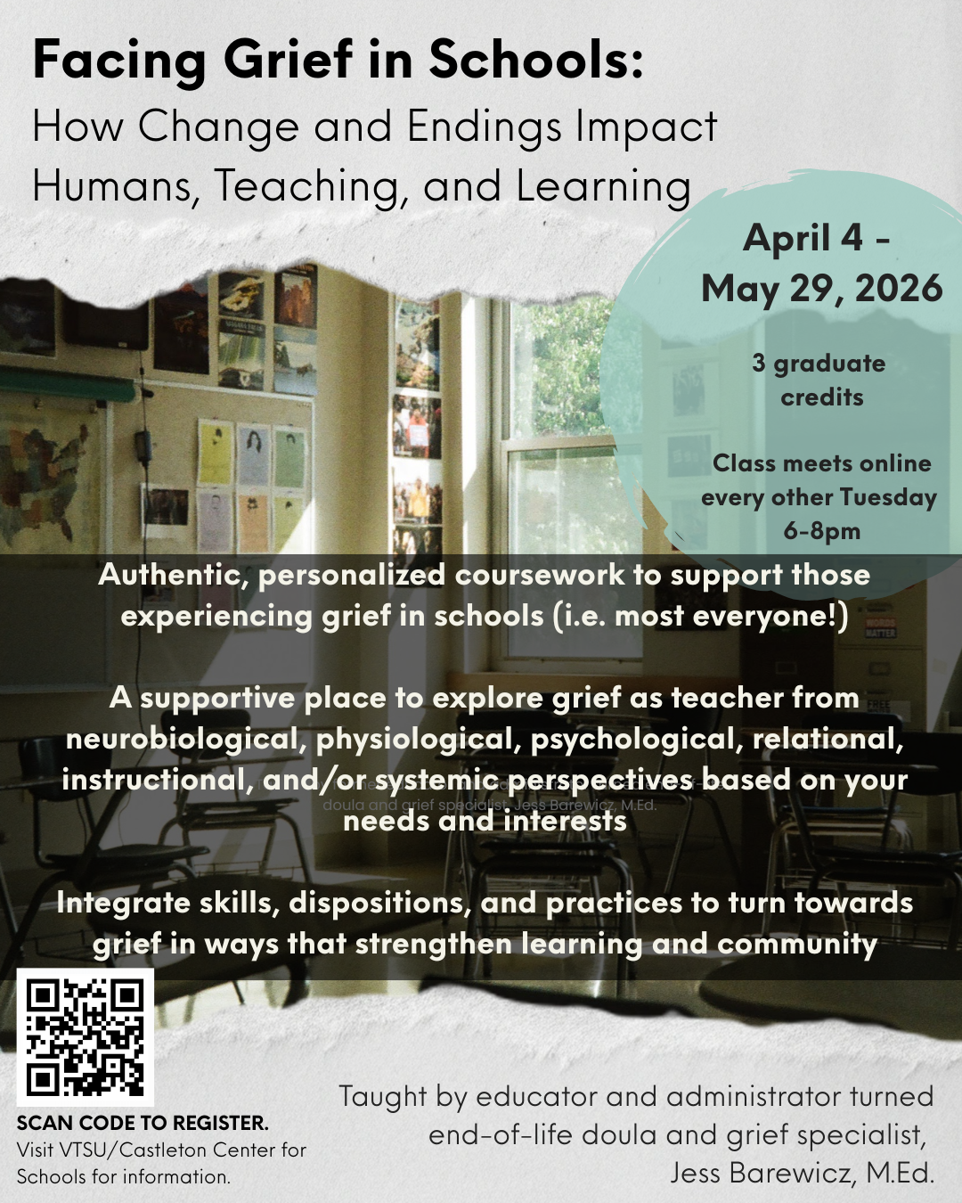 The course meets every other week on Tuesdays from 6:00-8:00pm online. The rest of the work happens asynchronously through VTSU/Castleton’s Canvas portal. You will receive instructions and support for the use of Canvas to the extent you need it.